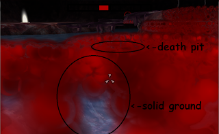 Mind you, this game's not perfect. There are a few conveyance issues, like the firey walls that instakill you even though you've had no trouble phasing in and out of fire beforehand. Come to think, the conveyance as a whole is kind of ham-handed. The mechanics of the game are presented by little illustrations of the mouse buttons right over the place where you are to press them. It doesn't affect the atmosphere too much, but still, I'd expect better from students who were ostensibly shown this stuff in a "what not to do" lecture.